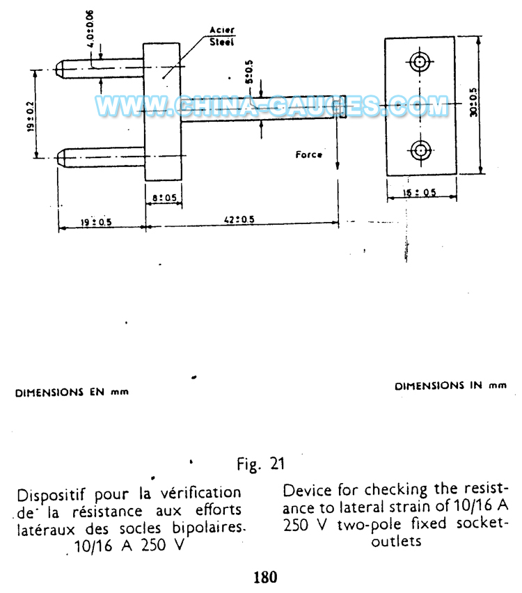 CEE7 C21 Device for Checking The Resistance to Lateral Strain of 10/16A 250V Two-Pole Fixed Socket-Outlets