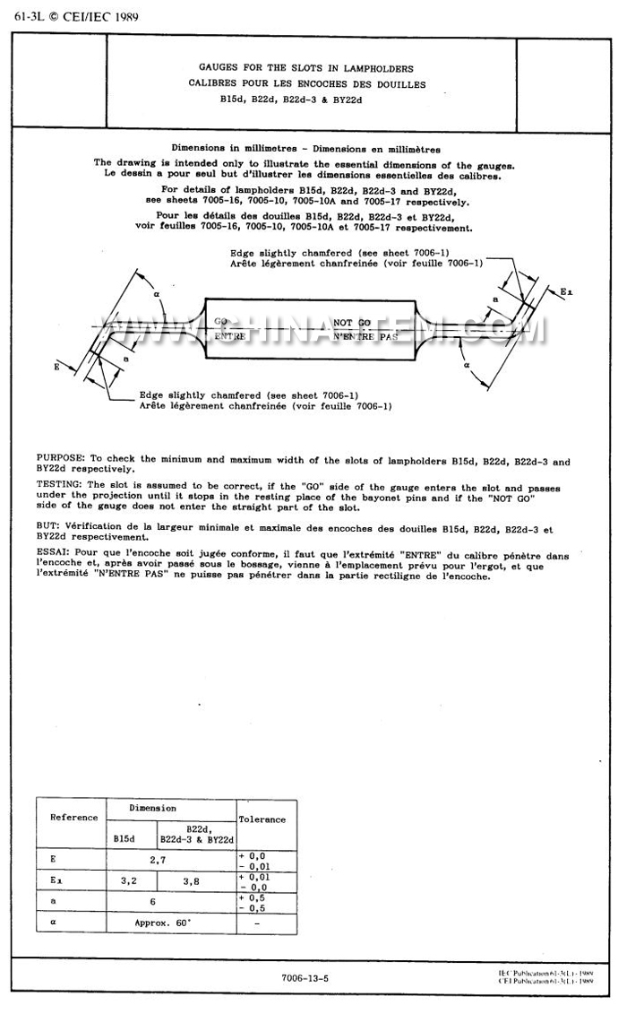 IEC60061-3: 7006-13-5 Gauge for The Slots in Lampholders B22d